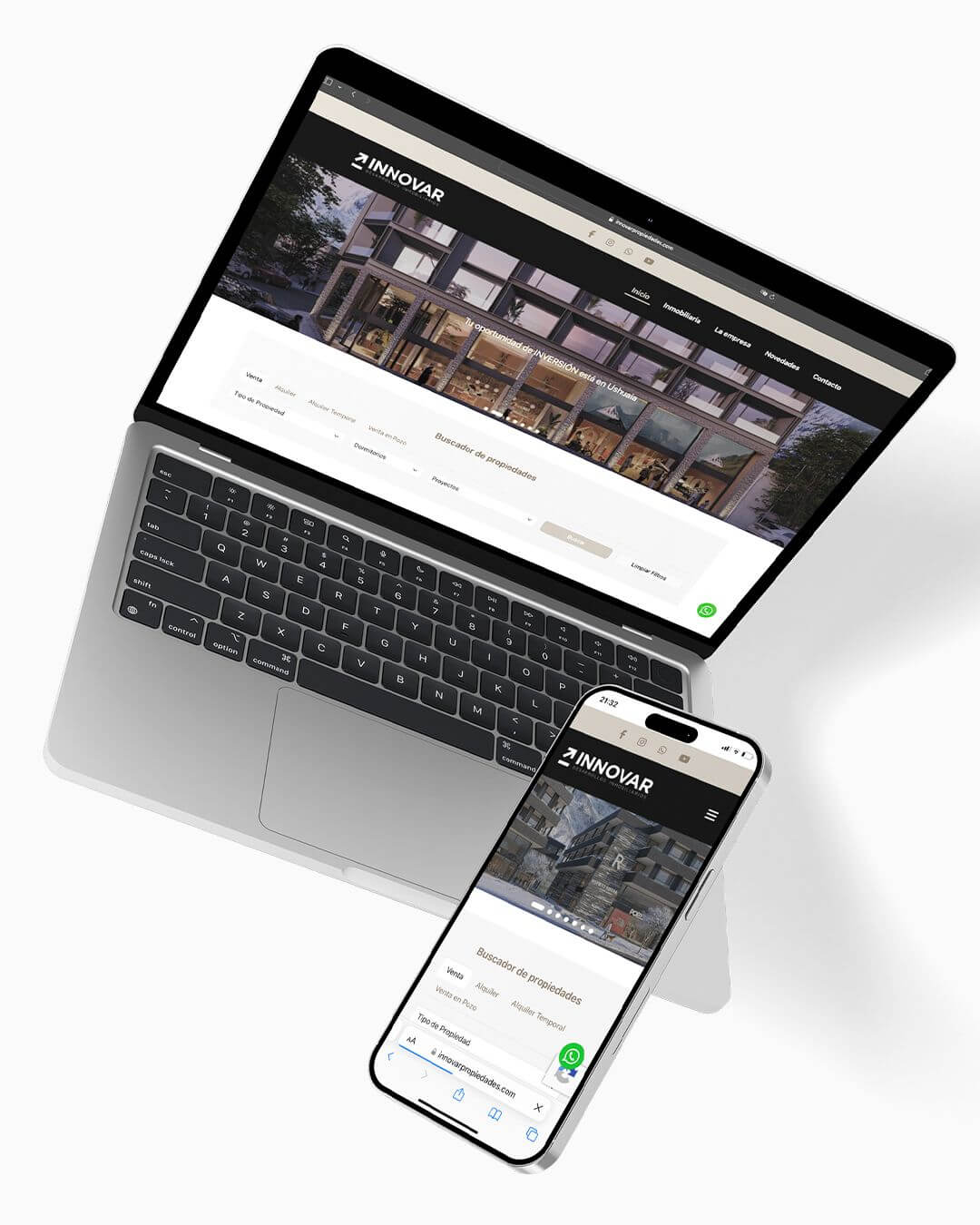 Innovar Propiedades es una de las inmobiliarias más importantes de Ushuaia, con una cartera activa de ventas, alquileres y proyectos en pozo orientados a inversión. Con un volumen alto de unidades y tipologías diversas, la web debía funcionar como herramienta comercial central, clara y confiable tanto para usuarios finales como para inversores.Desde Dale Click desarrollamos un sitio web inmobiliario enfocado en ordenar la oferta, facilitar la búsqueda y jerarquizar cada propiedad, priorizando la experiencia del usuario y la claridad de la información.